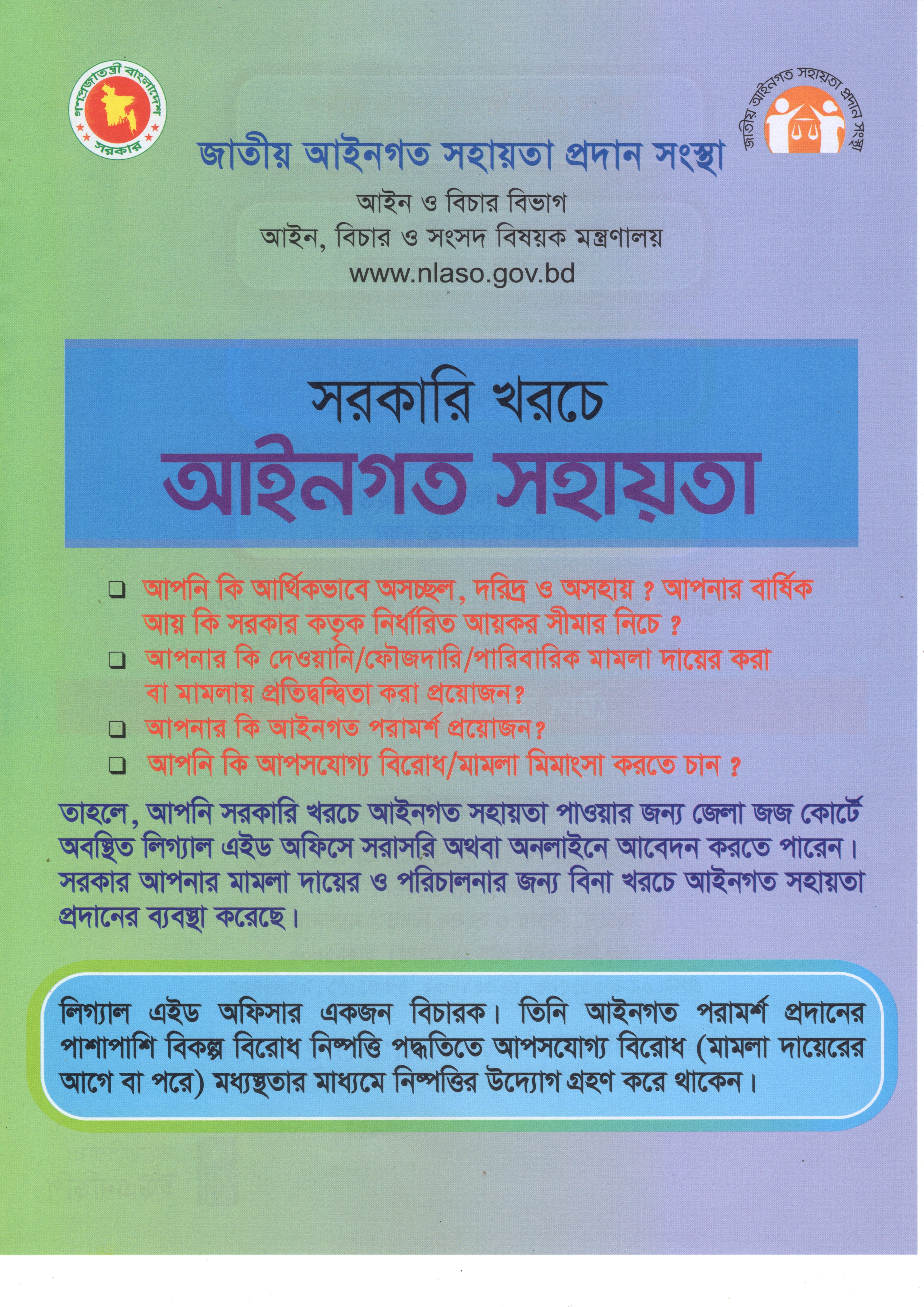 | ২ | সরকারি খরচে আইনগত সহায়তা প্রদান | ০৬-০২-২০২৪ | দেখুন | ||